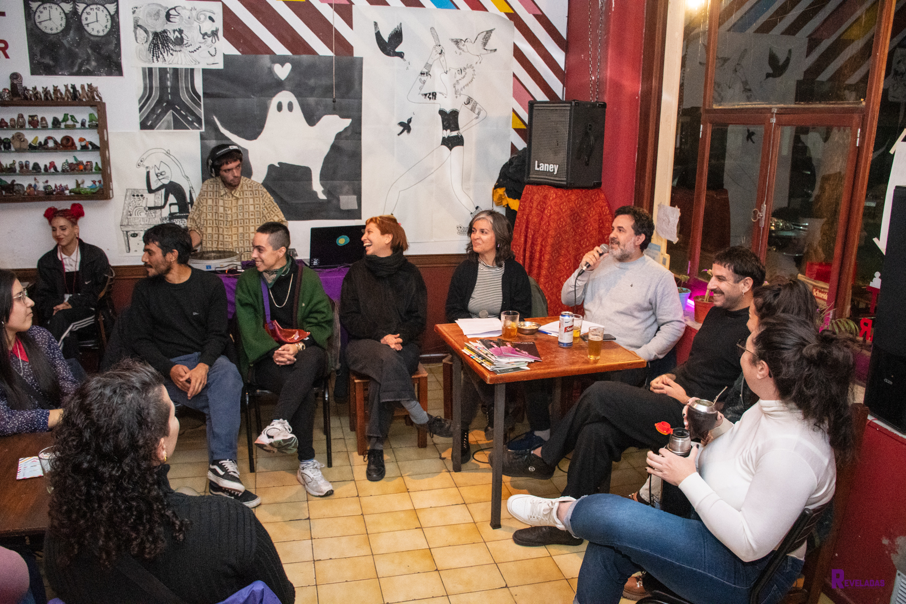 Ahí mismo se continuó la “rosca”, presenciamos la intervención de “Tango No Binario” entre las mesas y sillas del bar, a centimetros de nuestras miradas. Terminó la noche mientras escuchamos a DJ Valdelomar, poco a poco algunes se fueron yendo, otres salieron en conjunto, lo que nos aunó fue la felicidad de encontrarnos y las ganas de seguir activando estos espacios.