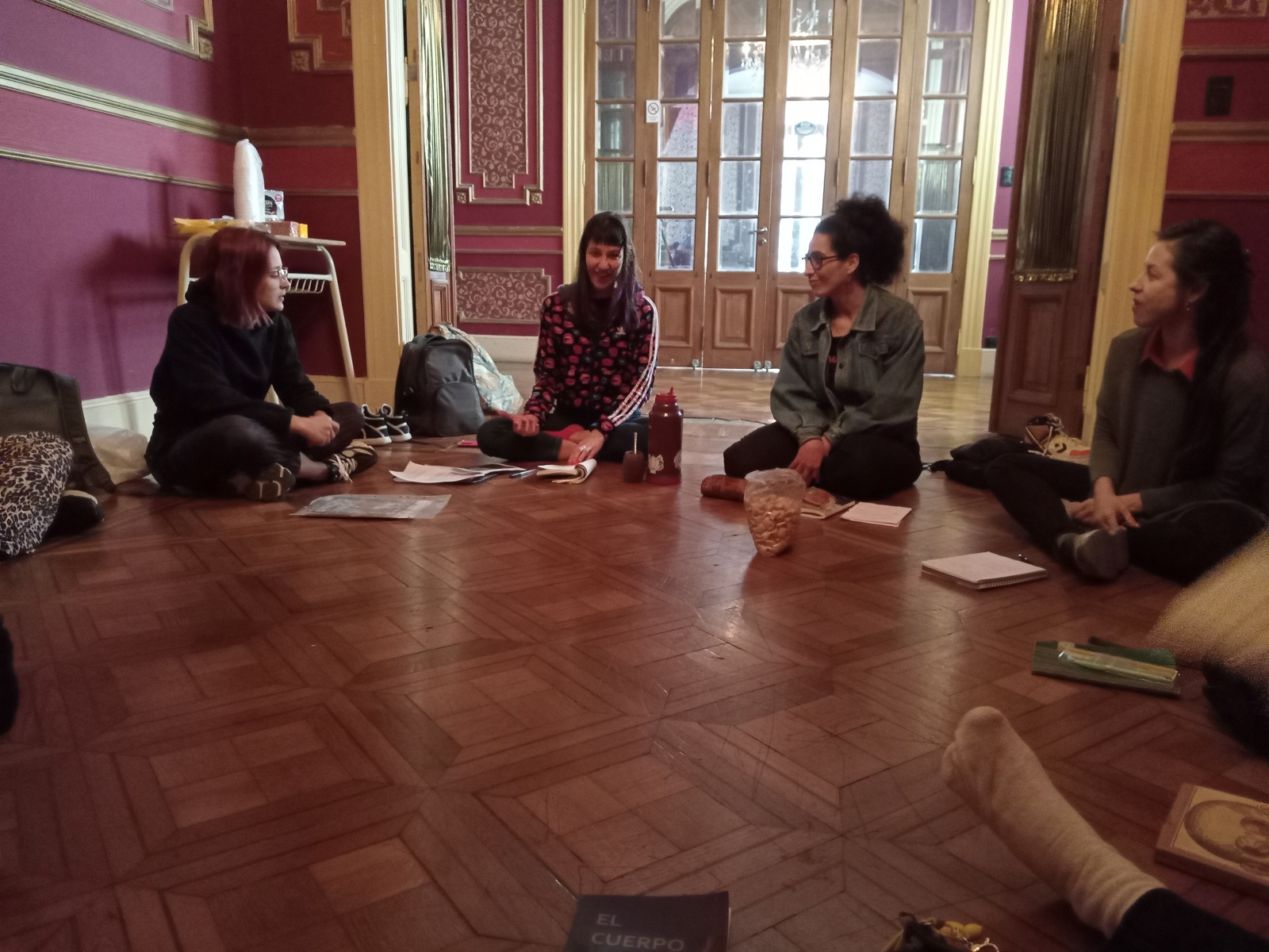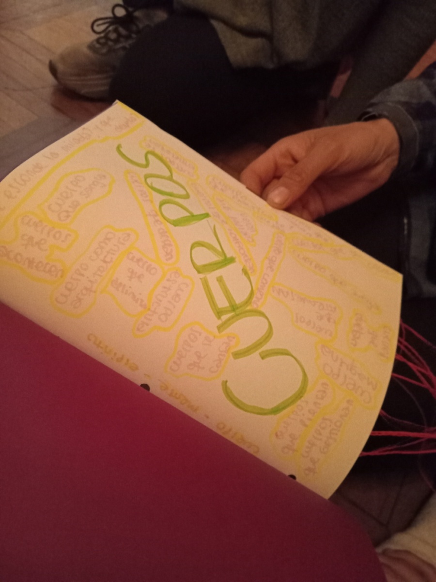 El intercambio colectivo dio lugar a presentaciones de lxs grupos, de cada integrante y de mí (por supuesto) que solo me animé a tomar tanto notas como fotos y a decir que “¡vivo mucho!” “ensimismada” con y por la experiencia, hacia el final de esta. Lo vivido fue (es aún) una experiencia nutricia, para metabolizar sin prisa, pero con alma, ya que, como en todo proceso creativo, en él se mueven ciertas células, moléculas y hasta nucleótidos venidos de la propia vaguada de la voz del Arte. Nada más. Nada menos.