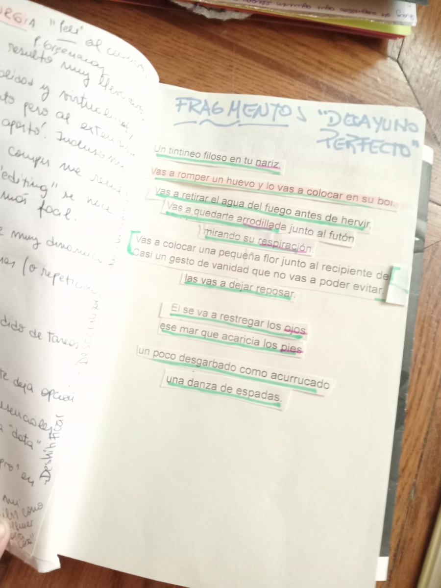 El encuentro (fabuloso, por cierto) rondó acerca de estos procesos creativos (de lo más variopintos) que versaron sobre distintos ejes: desde “suspensiones capilares”, valijas llenas de secretos-objetos encontrados ¿al azar?, en calles y/o avenidas, anécdotas semejando ficciones de lo real, sonoridades, coloraturas y texturas de lo más diversas (¡y bellas!) hasta el cuento de Alejandra Kamiya, Desayuno Perfecto. El resultado fue pulsante, reflexivo y gozoso.