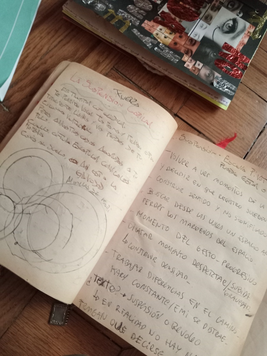 Ayelén Clavín no solo es bailarina, performer, investigadora y docente, además es una artista que con-mueve desde su mirada amorosa, palabras y prácticas sensibles. En este caso lo dicho no solo se hizo evidente, ¡sino que se materializó!, en un encuentro presencial entre cuatro grupos, previamente seleccionadxs mediante una convocatoria en la ciudad de Rosario que, finalmente, pudieron presentar (y compartir) sus Works in Progress luego de tres tutorías virtuales de dos has cada uno, durante el año 2023.