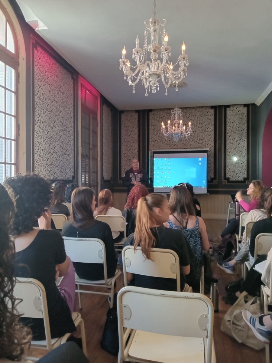 Marcelo Moyano, Licenciado en Artes. Profesor Titular de Historia de los Medios y el  Espectáculo y de Métodos de Investigación en el DAM-UNA, hizo su presentación a las 16 ha en el mismo (y mágico) edificio, anexo, de danzas Isabel Taboga. Su Masterclass fue una travesía inquieta (guiño), por puertas, postigos y ventiluces, así como aberturas y cerramientos por los desvíos, derivas y todo lo correspondiente al sistema vascular de la Historia del Arte.